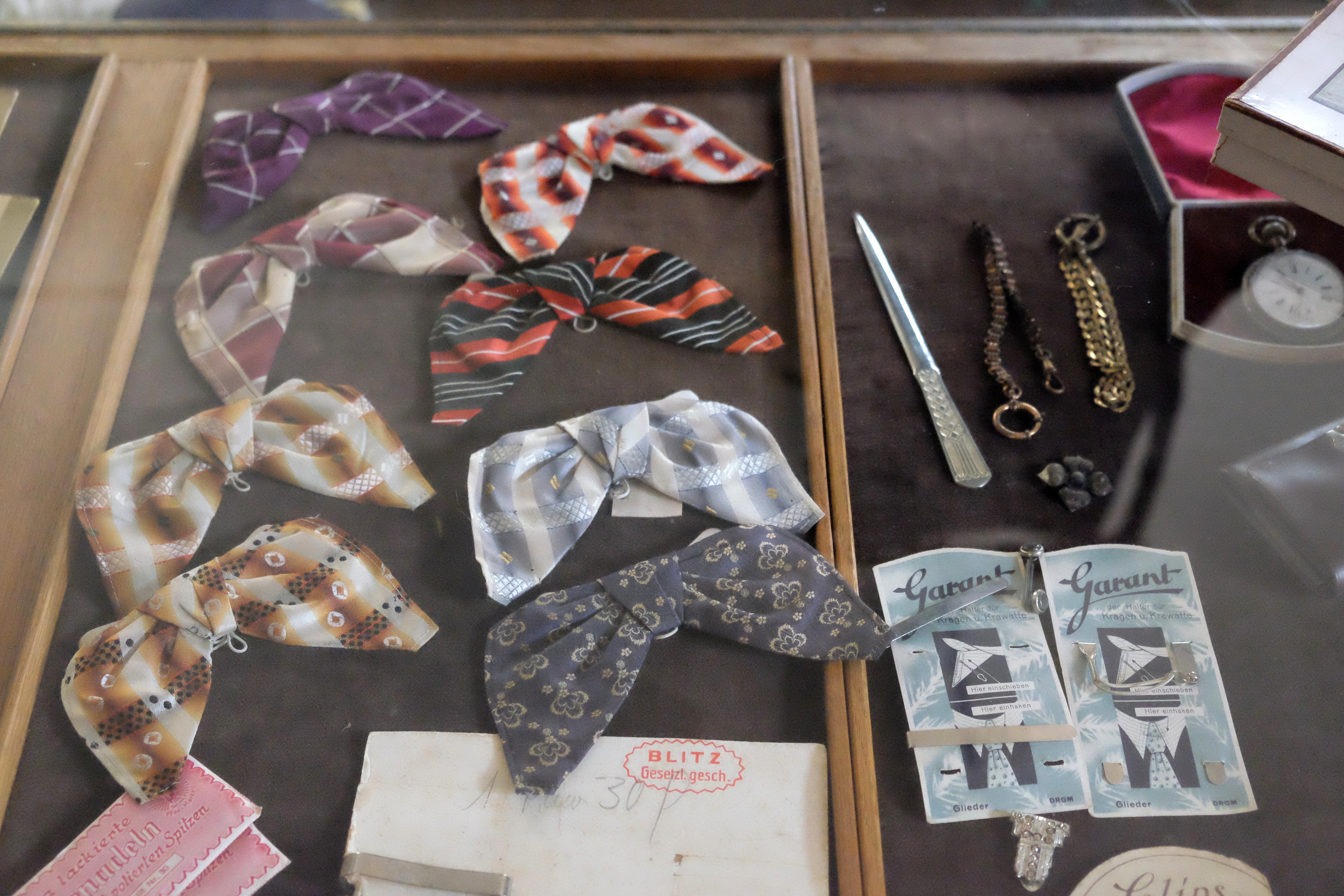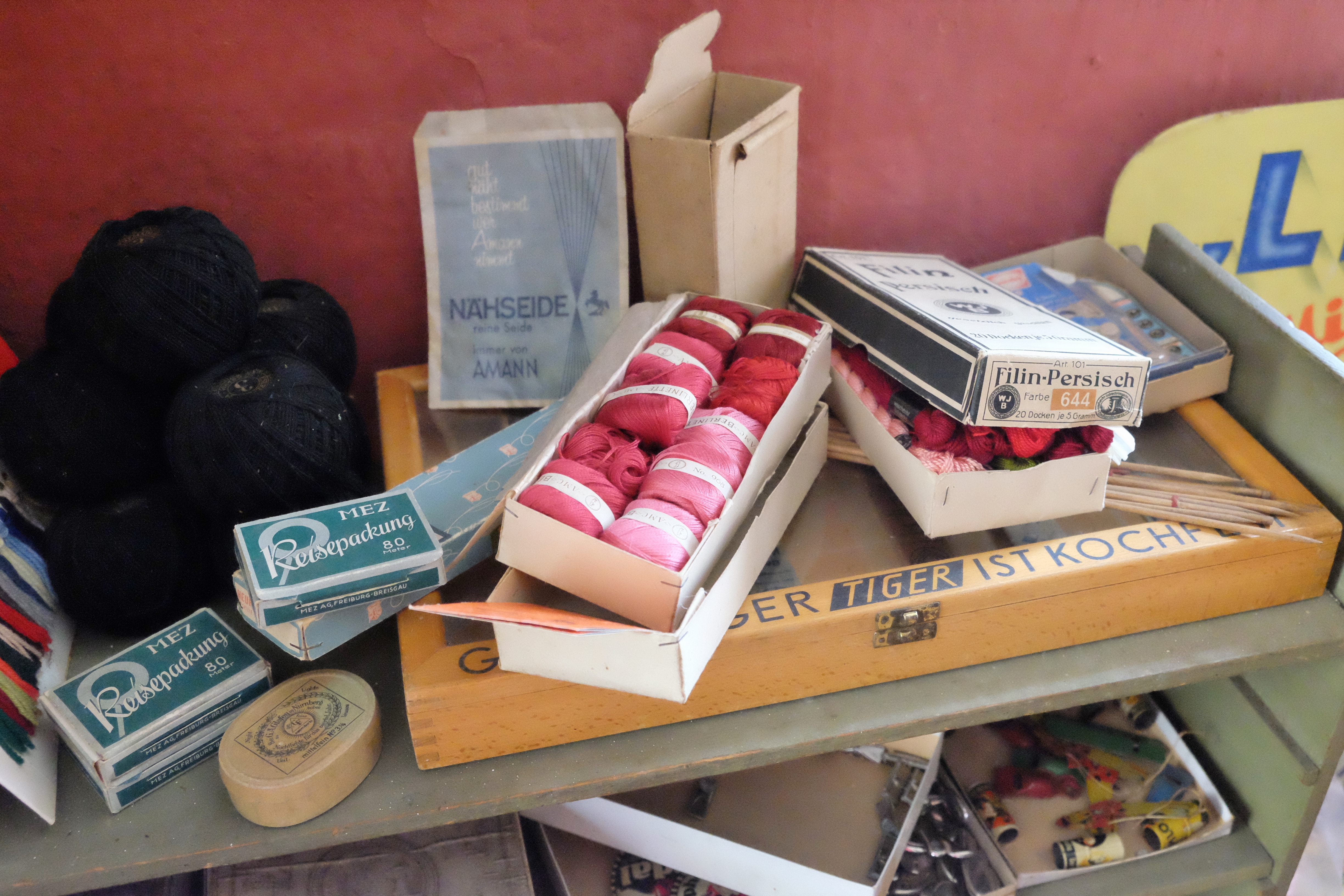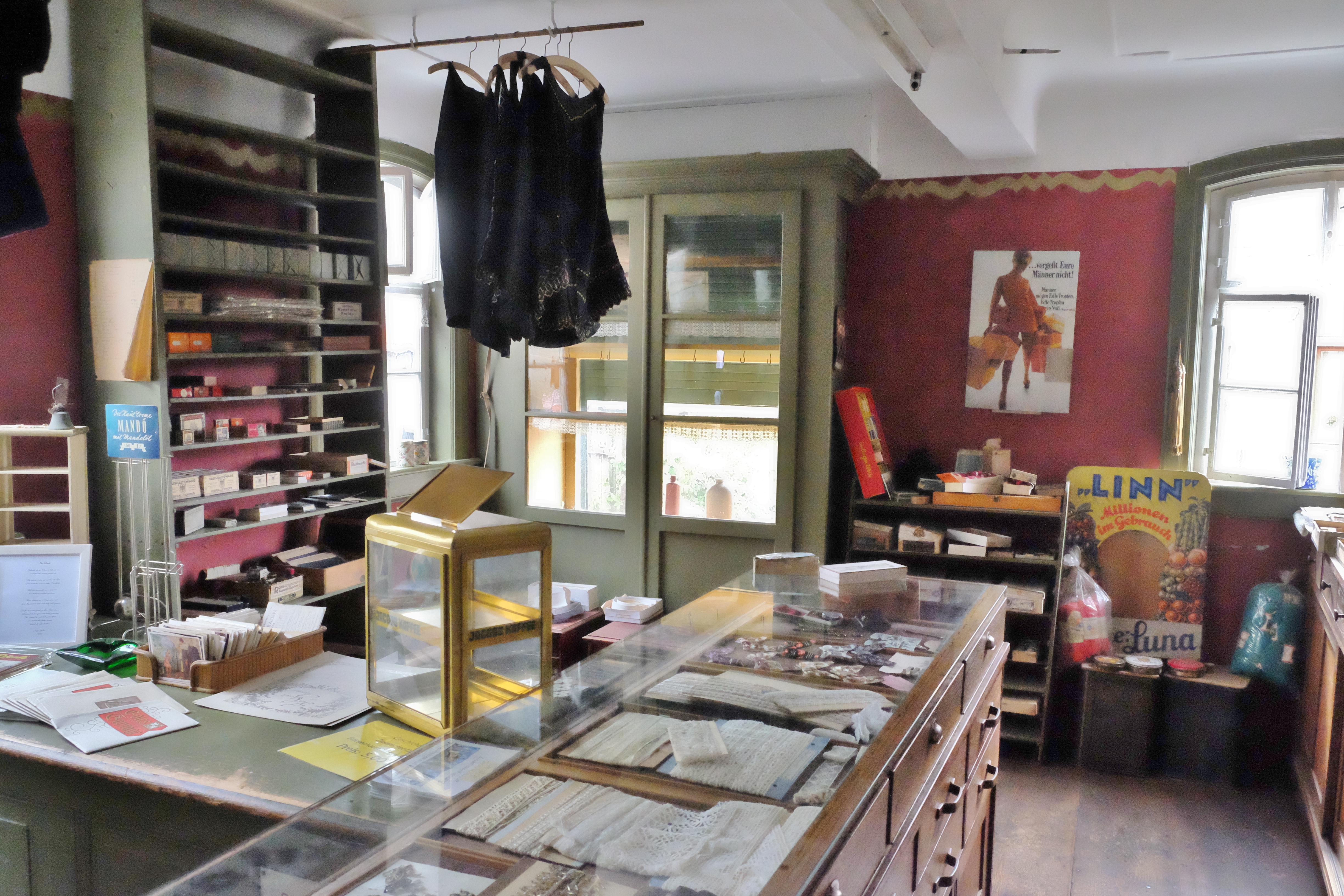 Hier gab es alles, was gebraucht wurde: Knöpfe, Stoffe, Spitze, Litzen, Schrauben, Frisiermittel, Tabakwaren, Gewürze, Christbaumschmuck, Werkzeug, Waschmittel…